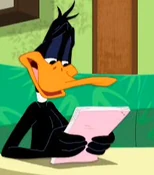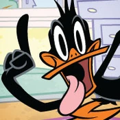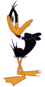 Daffy Sheldon Duck is a screwball, greedy duck created by Tex Avery, and the deuteragonist of The Looney Tunes Show. He is a black/orange duck and Bugs Bunny’s best friend. He has been staying with Bugs over five-years, until he gets back on his feet, which usually takes a while. Daffy is a jerk and describes himself as such. He is a borderline maniac with low intelligence who is unemployed. These reasons often make Daffy the comic relief. Daffy has a girlfriend named Tina.