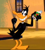 Daffy is a compulsive liar, lying is apparently one of his best skills as he's often able to fool, and con everyone he meets, even characters who are held as more intelligent than he is such as Tina. Daffy however often lets his lies get out of control, and even starts to believe them himself if left for too long. He is not above abusing or exploiting things in his favor, or at least trying to. He is manipulative enough to even trick Bugs into going allow with his plans, on occasion, and often shows a complete disregard for the rights of others. Though, this is more down to his own greed and stupidity than true malice. However, on a few occasions, he has shown that he cares for others as he willingly helped Porky over saving a truffle that was worth half a million dollars (though after he saved Porky he dove right in to get the truffle and learned it was just a worthless potato) and lied to Tina's father so he could prove he was good enough for her. This overall shows that he does have a compassionate side and does greatly care for his friends and family, despite rarely ever showing it