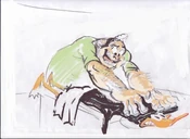 Daffy does not wear clothes during his regular day to day activities *Although he has a large wardrobe which seemingly he wears none of*, but he has been seen wearing various uniforms for the few jobs that he has had, Including but not limited to a security guard uniform, a Suit for his very short lived CEO position at Enormocorp, and a golfing outfit *which he probably stole* for his visits to the Country club. Ironically while he never wears clothes at home, he always covers himself with a towel when leaving the shower.