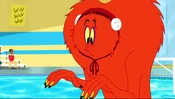 Gossamer makes a more major appearance in Bobcats on Three! He, Emily, Andrew and Maya want Daffy to be their water polo coach. Daffy is an awful coach until Emily suggests Gossamer be the goalie, and the team thrives.