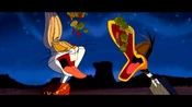 - Bugs is playing the role of "The Stranger", Daffy is playing the role of "Black Bart", and Lola is playing the role of "The Filly".